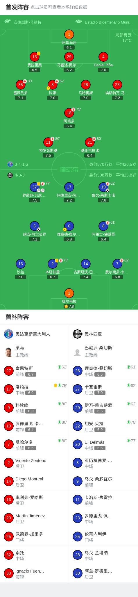 第35分钟,奥林匹亚球员罗密欧-贝尼特斯助攻胡安-阿尔法罗打入一球。