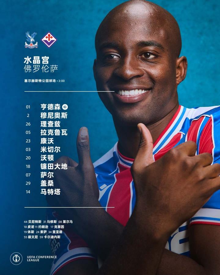 水晶宫 vs 佛罗伦萨 | 首发公布 马特塔回归首发,沃顿、盖桑在列