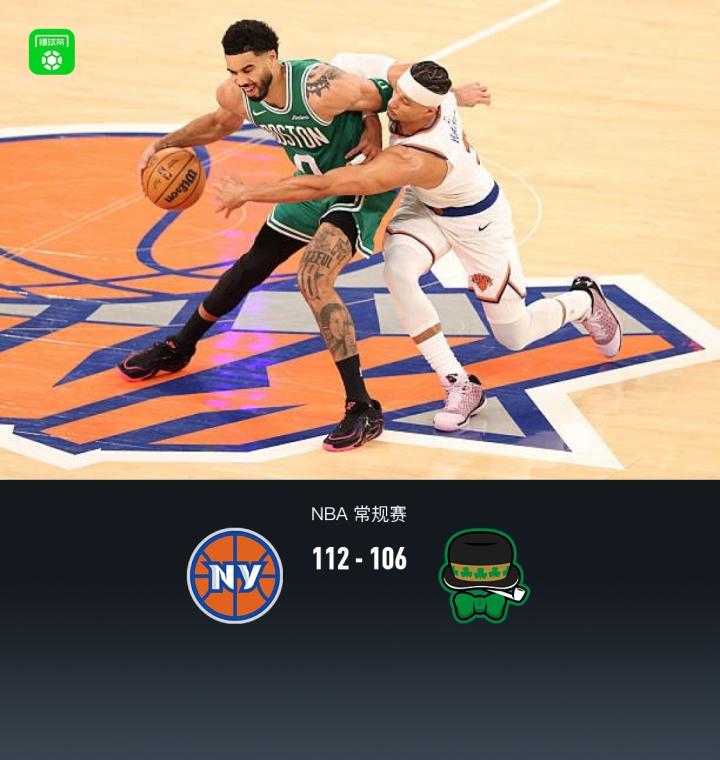 尼克斯112-106险胜凯尔特人,布伦森25+9,塔图姆空砍24+13+8