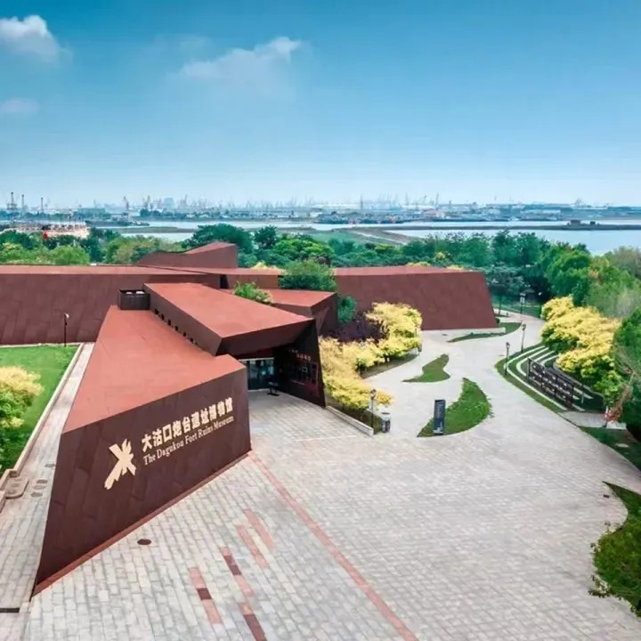 大沽口炮台遗址博物馆,系国家二级博物馆。建筑面积为3900平方米,主展厅面积约1700平方米,主要由展厅、临时展厅、3D影院等组成。建筑造型呈不规则放射状,犹如炮弹爆炸的形状,设计取意"民族精神的迸发"。整个建筑用高强度钢板覆盖,用自然锈色体现历史的厚重与深沉,极富震撼力与艺术性。基本陈列《海上国门》曾荣获”第十一届全国十大精品展览"优胜奖,由序厅及京畿海门、沽口御侮、国门沦陷等部分组成,采取博物馆与纪念馆相结合的陈列艺术形式、传统与现代手段相结合的陈列方法,通过声、光、电等新技术手段,客观而生动地展现大沽口炮台历经外敌入侵、几经兴废的悲壮历史和中国人民不畏强暴、奋勇抗争的史迹,更多地凸显大沽口炮台在中国近代史上的重要地位及丰厚的历史积淀。