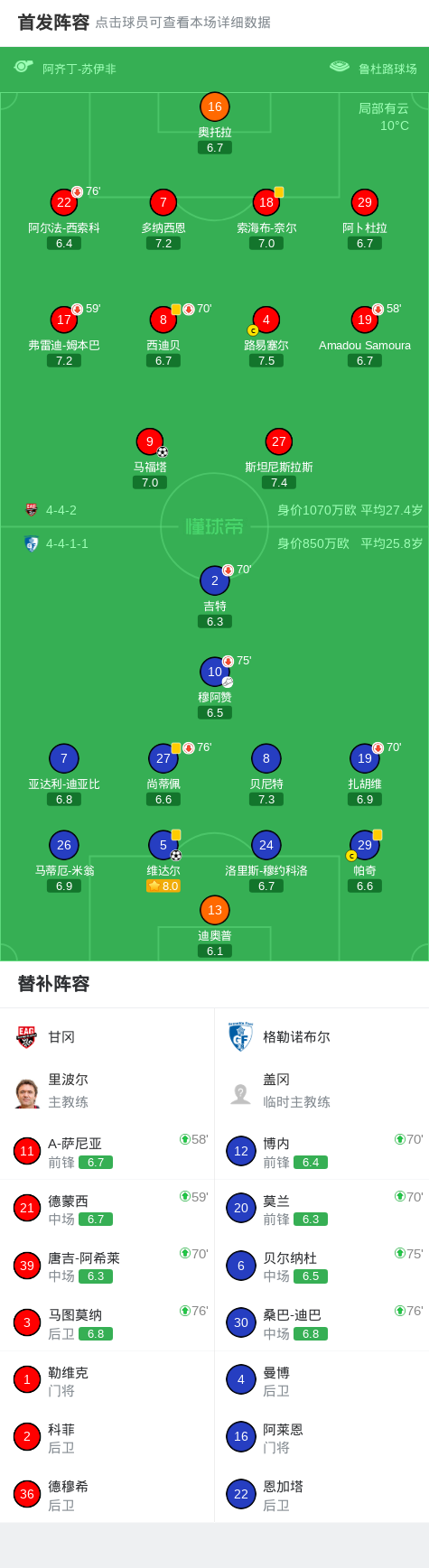 甘冈1-1格勒诺布尔,维达尔先拔头筹,马福塔扳平