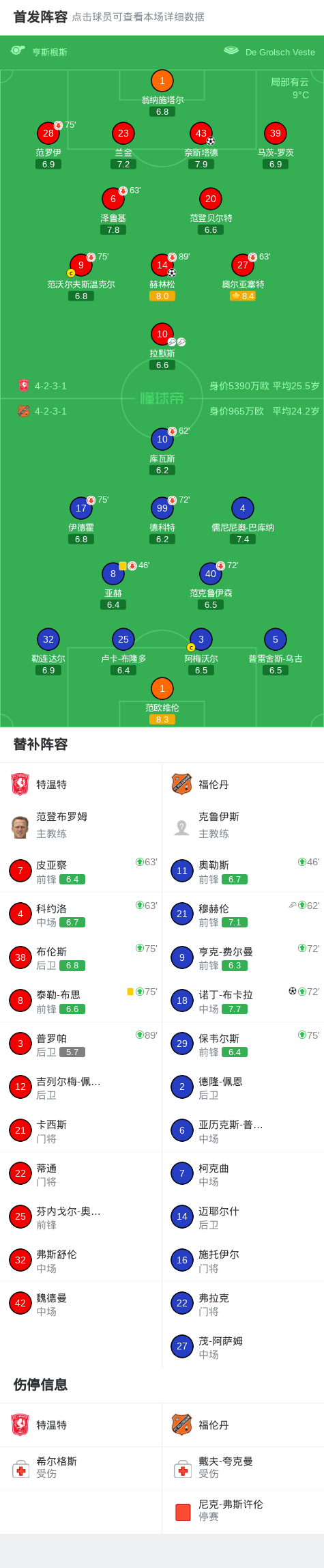 第34分钟,特温特球员拉默斯助攻赫林松打入一球。