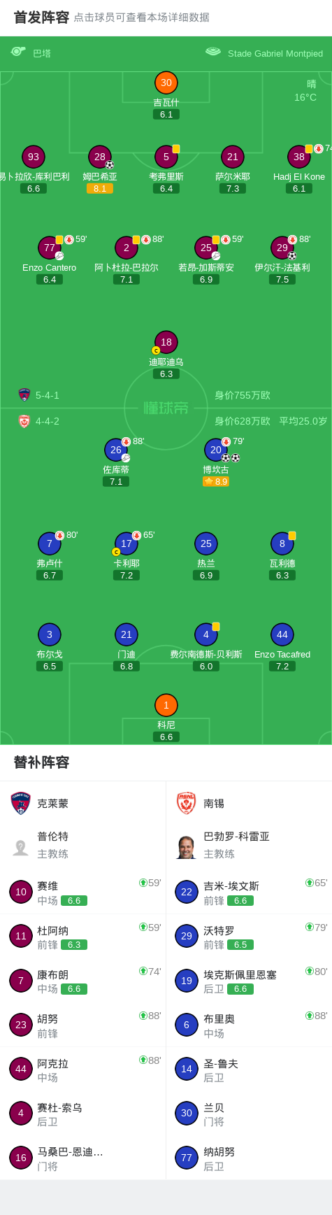 第54分钟,克莱蒙球员Enzo Cantero助攻伊尔汗-法基利打入一球。