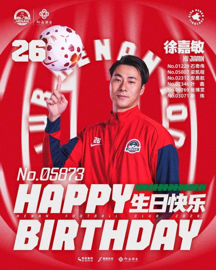今天是河南俱乐部彩陶坊球员徐嘉敏(会员ID:No.05873)及6名官方会员的生日,让我们一同祝福他们生日快乐!