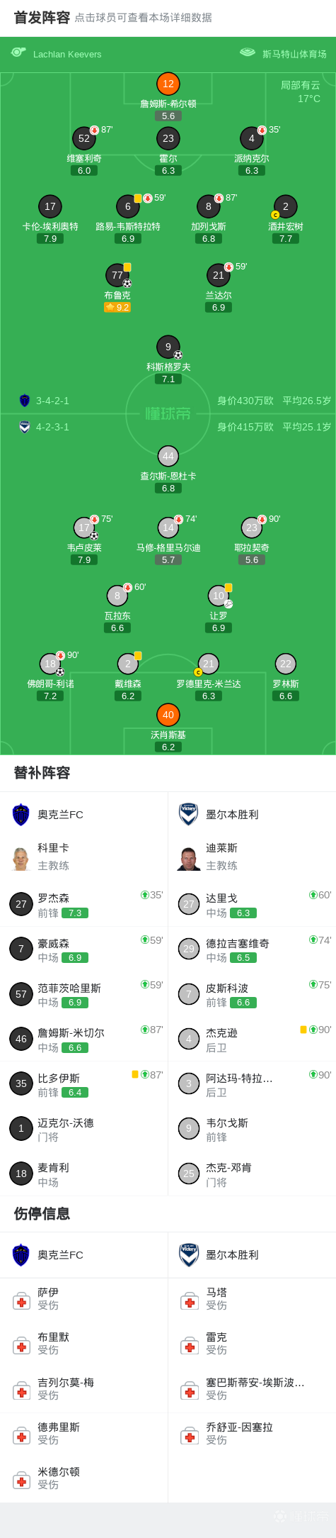 第53分钟,韦卢皮莱抓住维塞利奇的失误推射破门,墨尔本胜利2-1