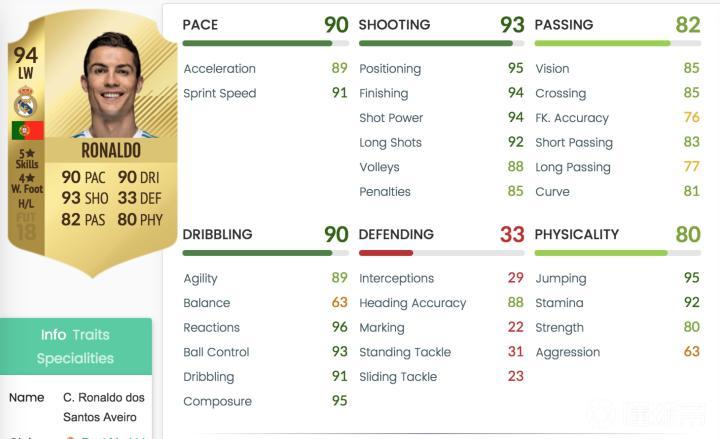 (图:C罗属性及细分属性)