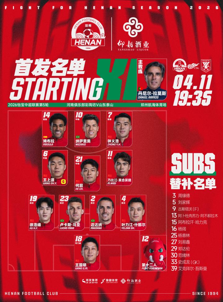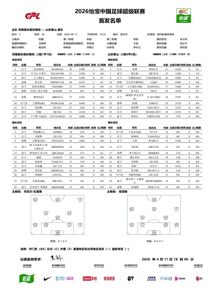 2026怡宝中超联赛第5轮河南俱乐部彩陶坊VS山...河南足球俱乐部 @懂球帝04-11 18:212026怡宝中超联赛第5轮 河南俱乐部彩陶坊VS山东泰山 首发及替补队员名单 📺咪咕视频APP(二台俱乐部官方直播间)/移动高清/咪视界/山东广播电视台新闻频道展开更多