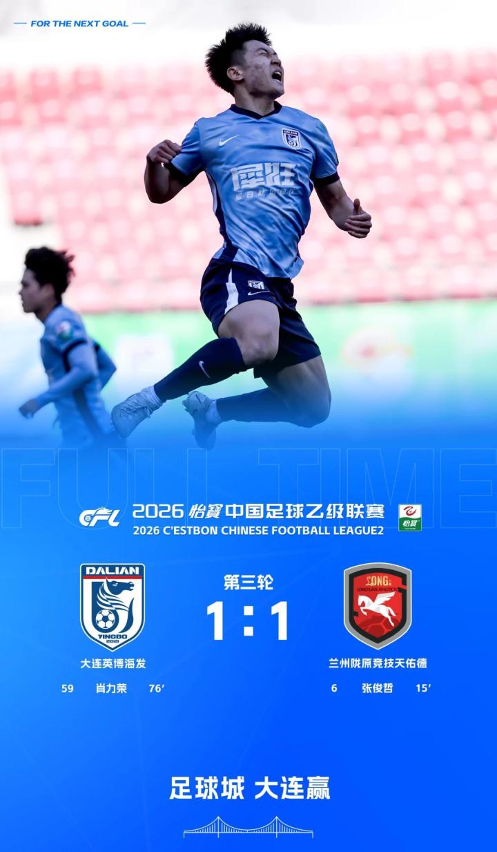 英博2026·B队战报|肖力荣进球 大连英博B队...大连英博足球俱乐部 @懂球帝04-11 19:10英博2026·B队战报|肖力荣进球 大连英博B队1-1战平兰州陇原竞技天佑德队 北京时间4月11日15:00,大连普湾体育场,2026怡宝中国足球乙级联赛预赛阶段第三轮,大连英博B队坐镇主场,迎接兰州陇原竞技天佑德队的挑战。 展开更多