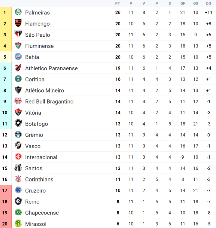 北京时间4月12日-13日,2026赛季巴西足球甲级联赛结束第11轮争夺。