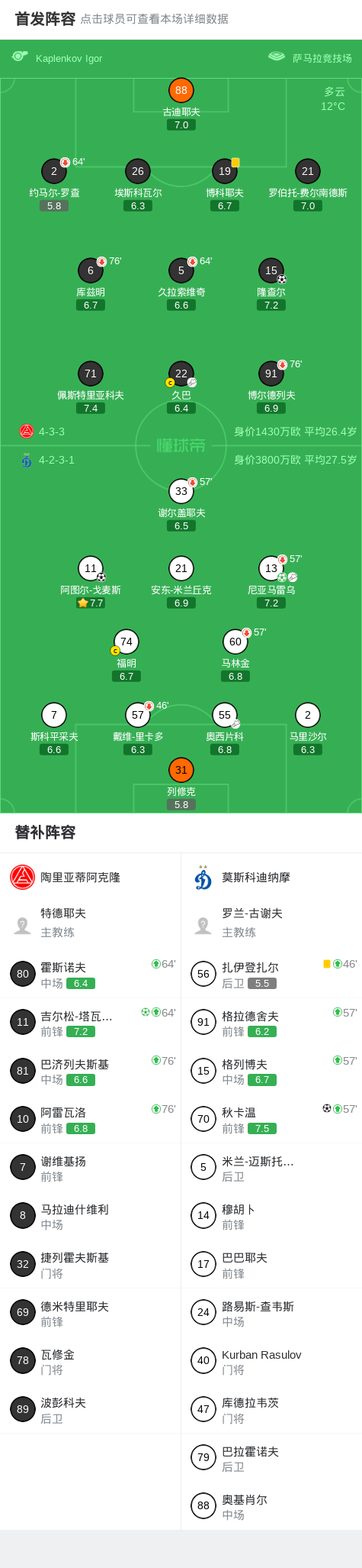 莫斯科迪纳摩3-2陶里亚蒂阿克隆,秋卡温建功,阿图尔-戈麦斯破门