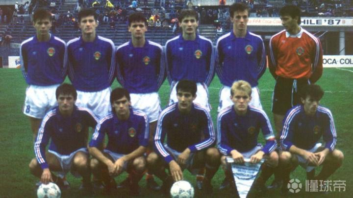 ▲1987年获得世青赛冠军的南斯拉夫青年队,后排左二为1998年世界杯金靴奖得主达沃·苏克,前排右二为队长普罗辛内斯基