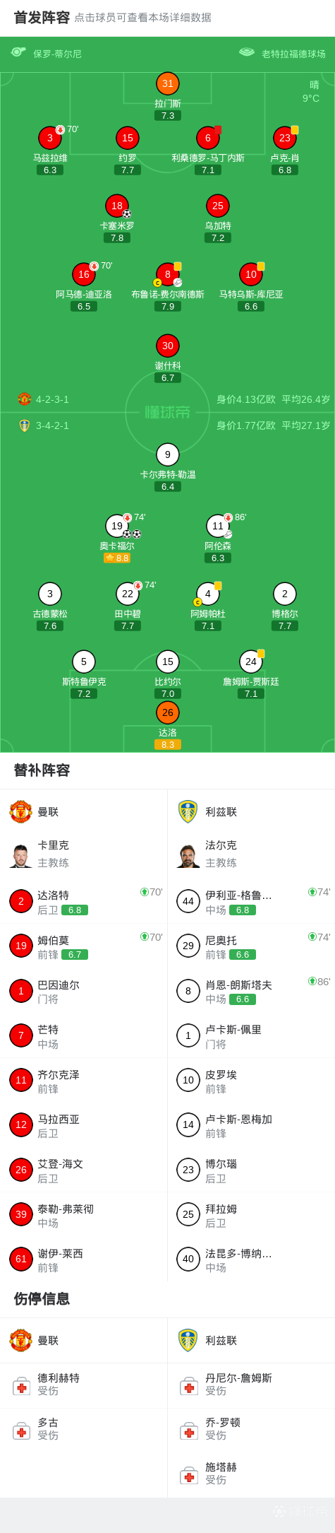 剑南春|十人曼联1-2利兹联,奥卡福尔双响,利马直红