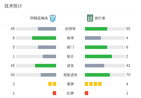 上半场补时第5分钟,旅行者球员Matías Fernández打入一球。