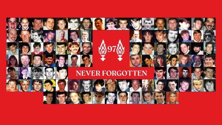 在希尔斯堡惨案发生37周年之际,利物浦足球俱乐部谨以此纪念在惨案中不幸遇难的97名球迷。