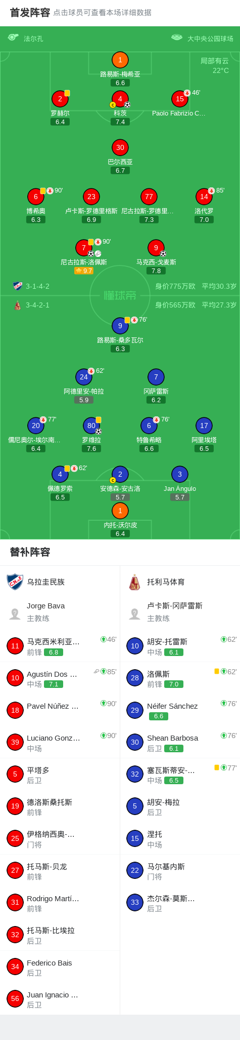 乌拉圭民族3-1托利马体育,尼古拉斯-洛佩斯1传1射,科茨建功