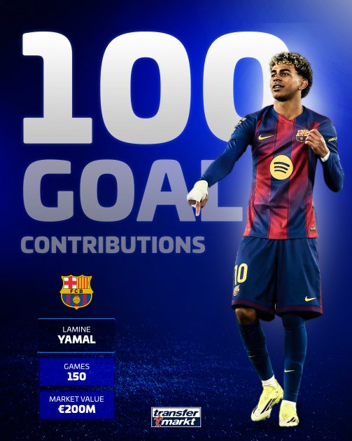 虽然没有晋级,但对于18岁的天才亚马尔来说,这依然是一个特殊的夜晚。他完成了自己在巴萨的第150次出场,同时也达成了个人在俱乐部的第100次进球参与(进球+助攻)。