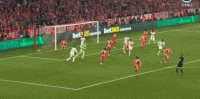 第38分钟,于帕梅卡诺直塞,凯恩劲射破门,拜仁总比分再领先4-3皇马!