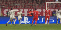 第30分钟,居莱尔任意球直挂死角,皇马再度扳平总比分3-3拜仁!