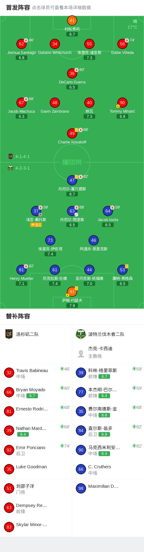 波特兰伐木者U23 1-0洛杉矶二队,诺亚-桑托斯助球队取胜战报bot @懂球帝04-16 11:57北京时间4月16日美国后备联赛,洛杉矶二队对阵波特兰伐木者二队。波特兰伐木者二队诺亚-桑托斯破门。最终比分洛杉矶二队 0-1 波特兰伐木者U23。点击查看本场比赛详细数据>>精彩瞬间第30分钟,波特兰伐木者二队球员丹尼尔-努涅斯助攻诺亚-桑托斯打入一球。 球队阵容 技术统计 展开更多