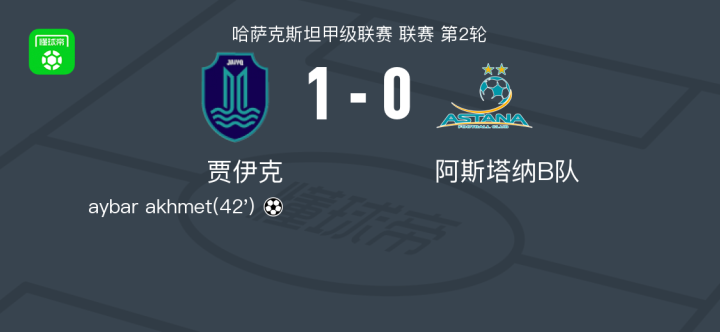 贾伊克1-0阿斯塔纳B队,aybar akhmet制胜球战报bot @懂球帝04-16 20:54北京时间4月16日哈萨克斯坦甲级联赛 联赛 第2轮,贾伊克主场对阵阿斯塔纳B队。贾伊克aybar akhmet破门。最终比分贾伊克 1-0 阿斯塔纳B队。点击查看本场比赛详细数据>>精彩瞬间第42分钟,贾伊克球员aybar akhmet打入一球。 技术统计 展开更多