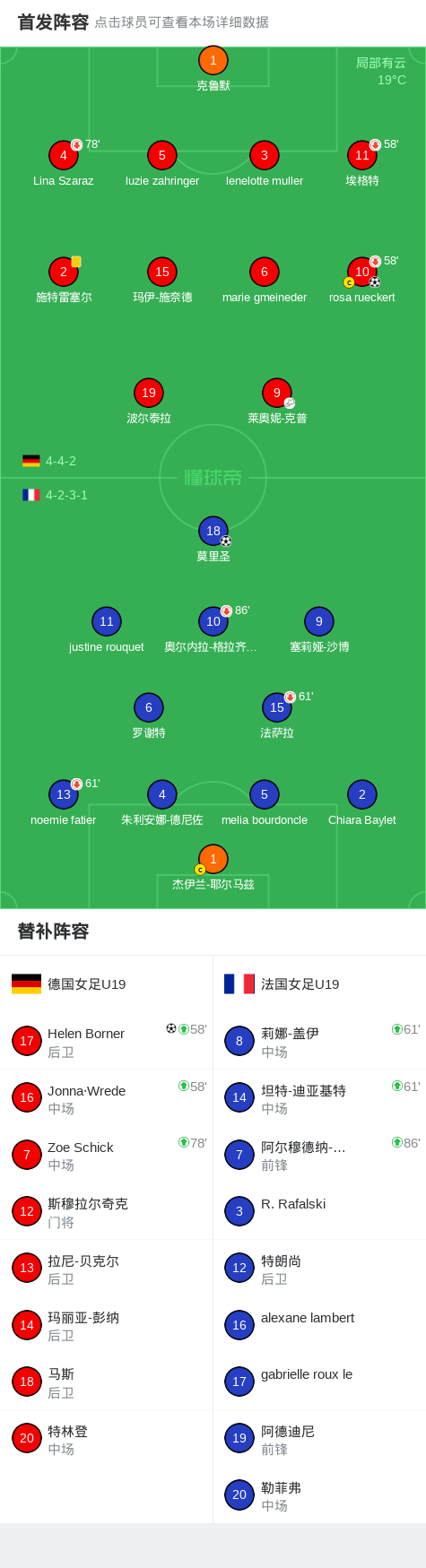 德国女足U19 2-1法国女足U19,Helen Borner建功,rosa rueckert破门