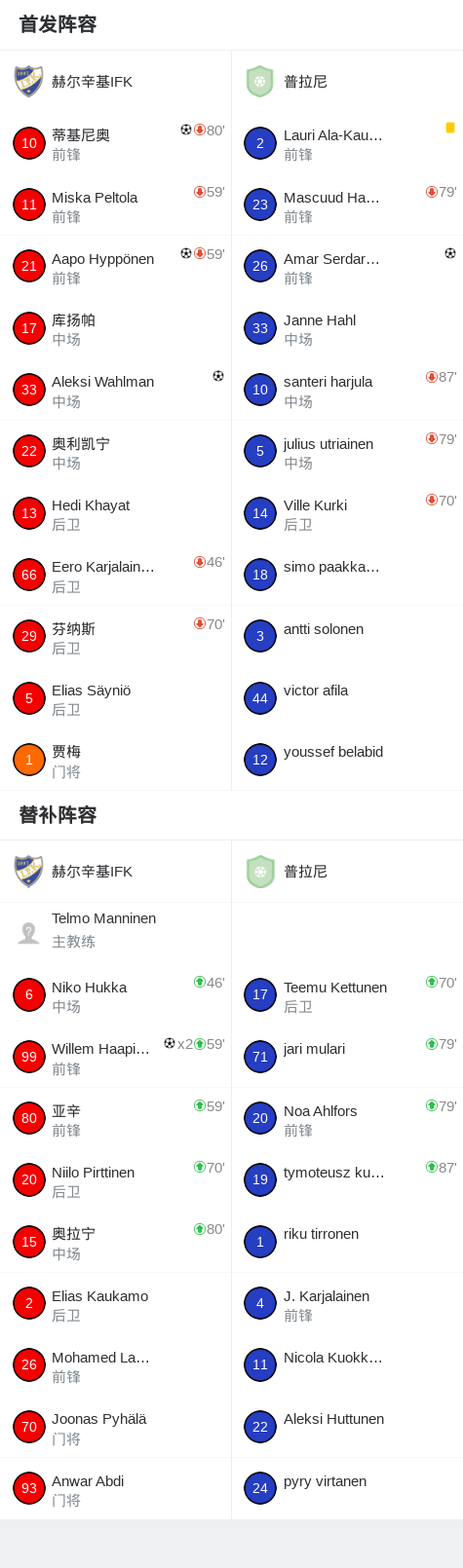 下半场补时第3分钟,赫尔辛基IFK球员Willem Haapiainen打入一球。