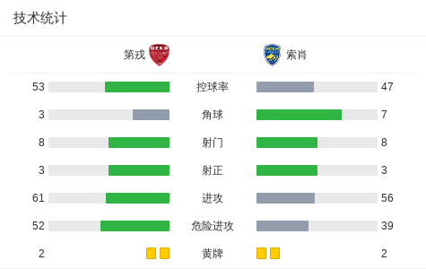 第戎0-0索肖,双方互有攻守战报bot @懂球帝昨天 03:23北京时间4月18日法国全国联赛 联赛 第30轮,第戎主场对阵索肖。最终比分第戎 0-0 索肖。点击查看本场比赛详细数据>>点击查看法丙完整积分榜>> 球队阵容 技术统计 展开更多