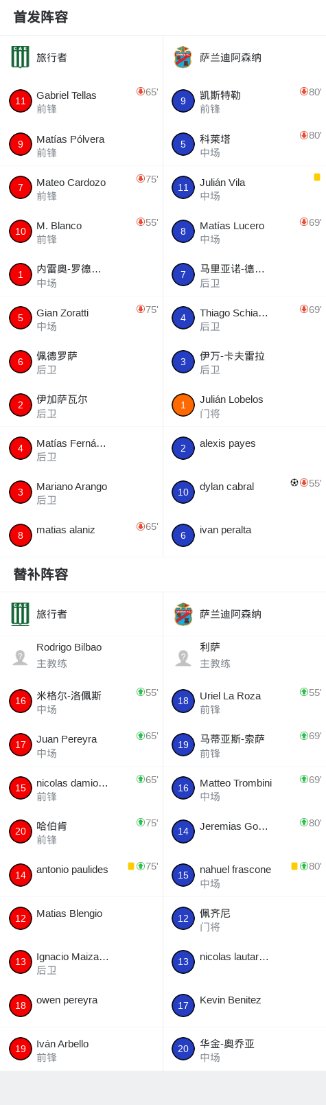 萨兰迪阿森纳1-0旅行者,dylan cabral一剑封喉战报bot @懂球帝昨天 08:59北京时间4月18日阿根廷足球乙级大都会区联赛 春季联赛 第12轮,旅行者主场对阵萨兰迪阿森纳。萨兰迪阿森纳dylan cabral破门。最终比分旅行者 0-1 萨兰迪阿森纳。点击查看本场比赛详细数据>>精彩瞬间第32分钟,萨兰迪阿森纳球员dylan cabral打入一球。 球队阵容 技术统计 展开更多