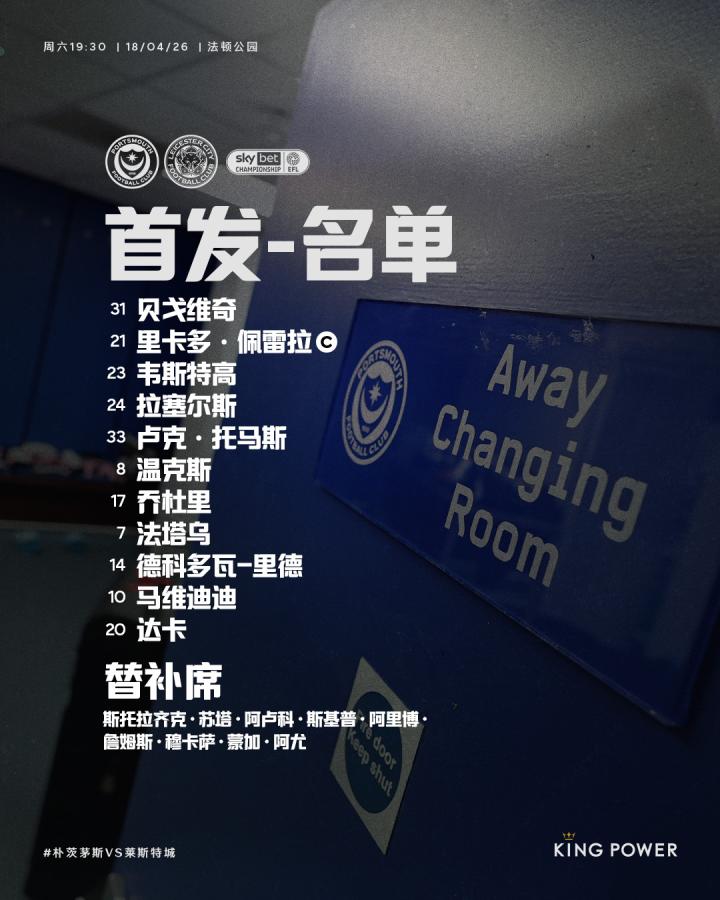 ⚔️ 我狐出战法顿公园的首发名单: 老贝和里德重回首发。