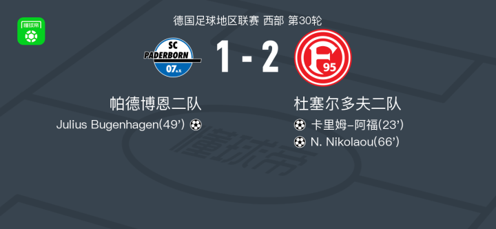 杜塞尔多夫B队2-1帕德博恩二队取德地区3连胜,N. Nikolaou、卡里姆-阿福破门