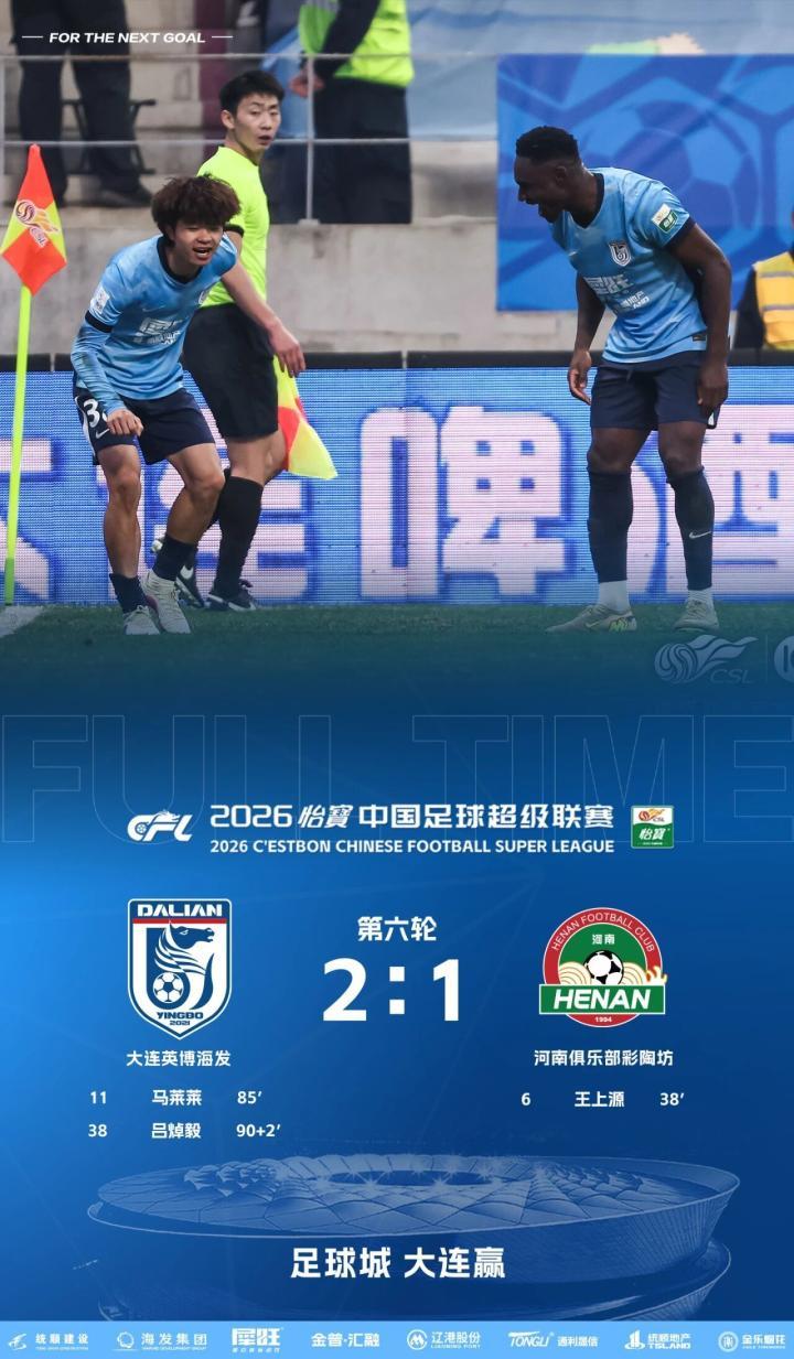 最终,凭借着马莱莱、吕焯毅的进球,大连英博海发队2-1战胜河南俱乐部彩陶坊队,迎来联赛四连胜!