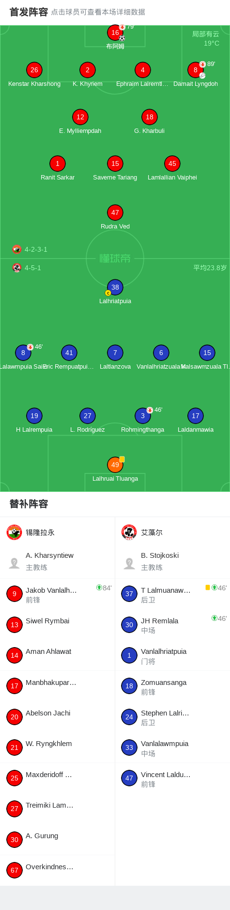 第70分钟,锡隆拉永球员Ephraim Lalremtluanga助攻Gladdy Kharbuli打入一球。