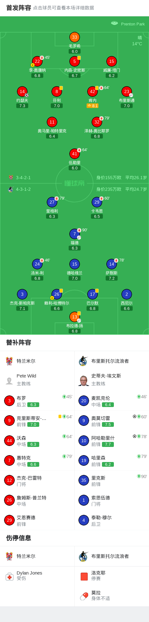 布里斯托尔流浪者2-1特兰米尔,阿哈勒里什、奥莫切雷建功