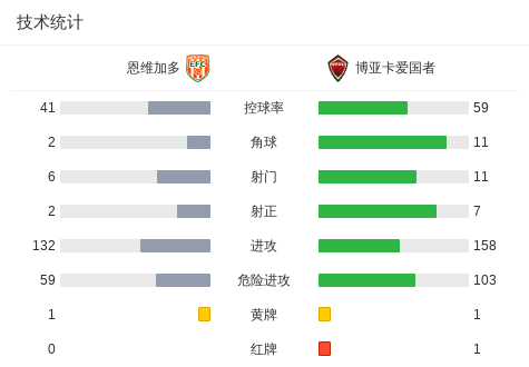第39分钟,恩维加多球员Jhon Gamboa打入一球。