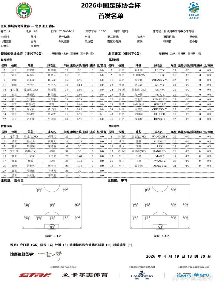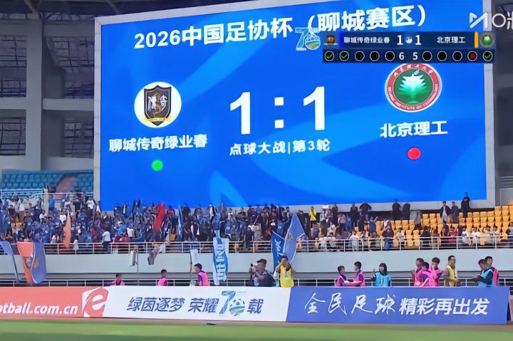 4月19日下午,在2026中国足协杯第二轮的一场较量中,此前止步中冠联赛的聊城传奇绿业春,经过点球大战,以7-6(点球6-5)的总比分淘汰中乙球队北京理工,闯入第三轮,并成为第5支晋级的业余球队。接下来,在第三轮中,聊城队将在主场迎战中甲球队宁波队。