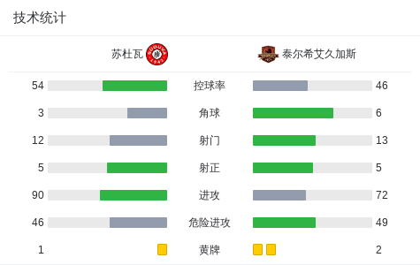 第18分钟,泰尔希艾久加斯球员索博威尔打入一球。
