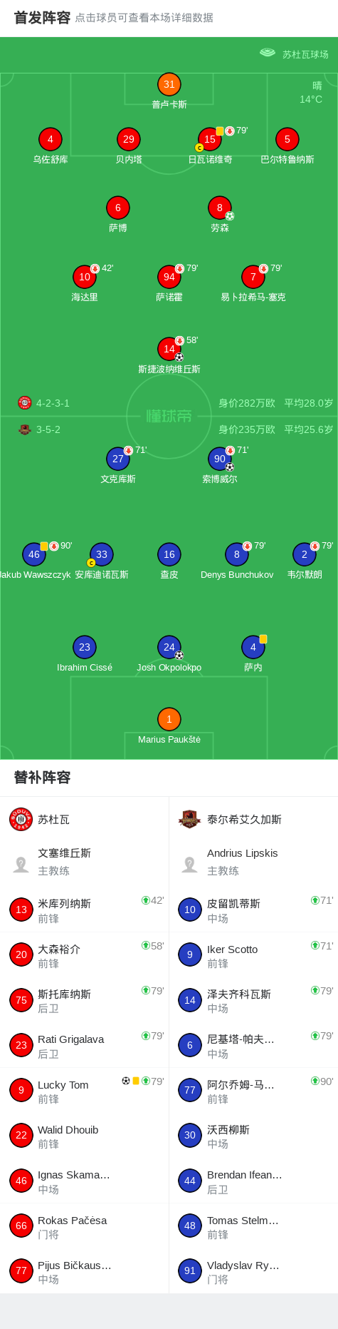 第15分钟,苏杜瓦球员斯捷波纳维丘斯打入一球。