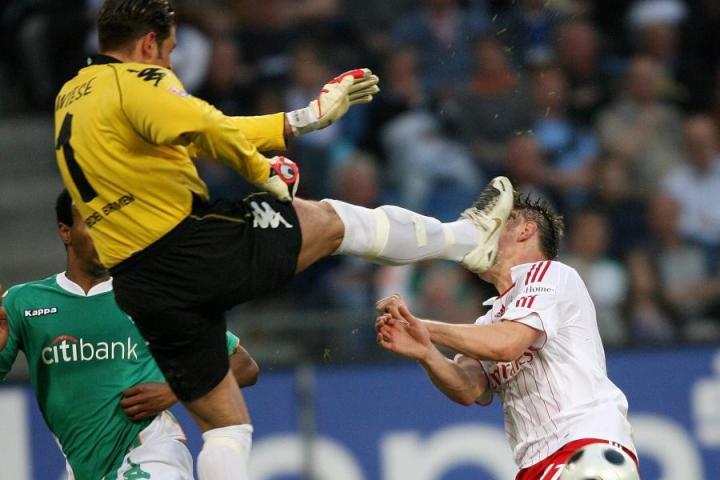 尽管前拜仁门神卡恩的功夫能力让其值得进入这份榜单,但是维泽的态度和大胆动作必须得到大家的承认。这位身高6英尺4英寸(1.93米)的巨人在不莱梅打出了名堂。2008年,维泽因为一个被足球皇帝贝肯鲍尔号称为“企图谋杀”的动作而上了各大媒体的头条。当时是不莱梅和汉堡的北方德比,维泽在一次出击解围中,抬脚过高直接踹到了对方前锋奥利奇的锁骨上,一位匿名的汉堡居民甚至因为这个动作向警方提出了指控!尽管这个动作十分吓人,但是维泽最后却只领到了一张黄牌。