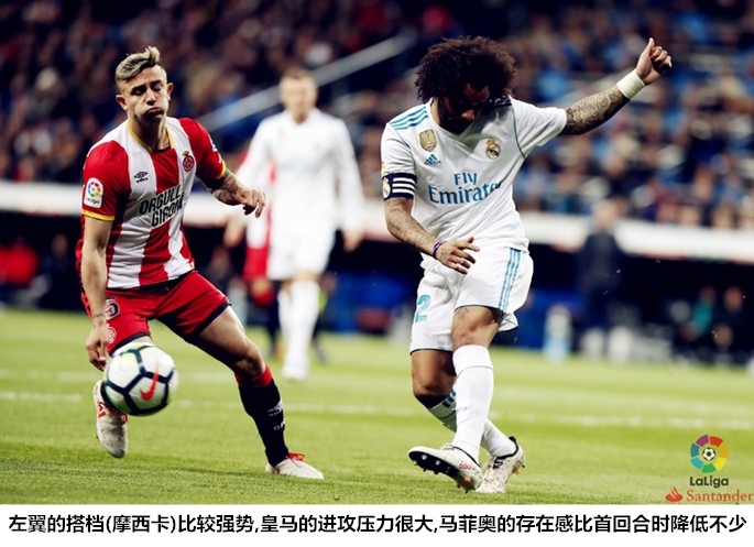 作为在赛季中期帮助皇马恢复活力的关键棋子,阿森西奥和巴斯克斯并不具备独撑大局的能力,两人在一板一眼的阵地进攻中的效率并没有那么高,他们只有充分融入到集体之后才能实现共赢。同首回合时的状态相比,赫罗纳此役的压迫和逼抢效果非常一般,这主要就是由于皇马球员的积极性和比赛状态更好,当他们能够在跑动距离上与对手达成均势时,胜利是十拿九稳的。