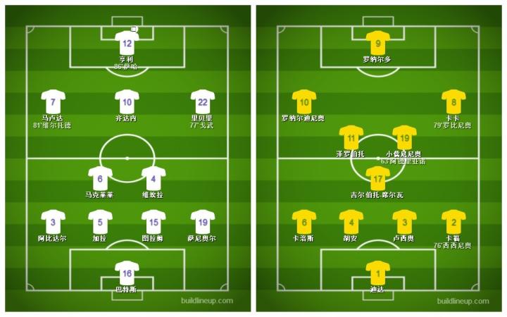 这场比赛,谨慎的佩雷拉出人意料拆散了前场魔幻四重奏,状态不佳的阿德沦为替补,法甲第一人小儒尼尼奥首发旨在加强中场控制力。面对出现复苏迹象的法国,巴西人不敢大意临时变阵4-5-1。但埃莫森的伤缺和卡卡的带伤上阵还是在一定程度上减损了他们的战斗力。即便如此,无论从哪个方面看,五星巴西都更胜一筹。