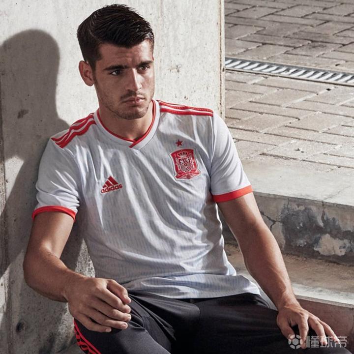 拥有独特浅蓝色外观的西班牙国家队客场球衣胸前加入源自上世纪80年代阿迪达斯经典球衣的蓝色阴影,球衣胸前队徽、袖口、衣领以及胜利三条纹均采用醒目的亮红色装饰,让这件客场战袍显得格外特别。