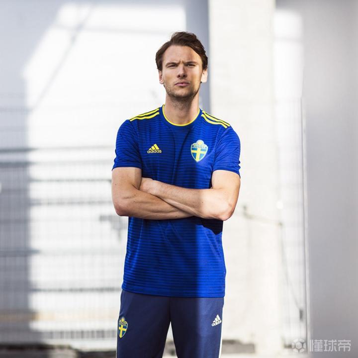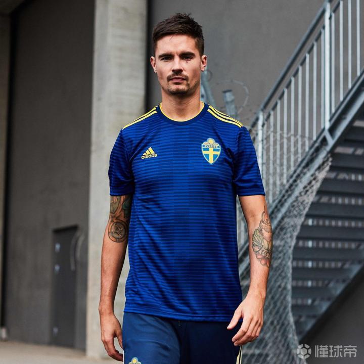 瑞典国家队世界杯客场球衣延续了传统的蓝色外观,并通过面料的丰富细节来展现现代风格。球衣通过两种不同蓝色的条纹变化营造出富有韵律的视觉变化,并且通过加入醒目黄色元素构成瑞典国旗的形象。