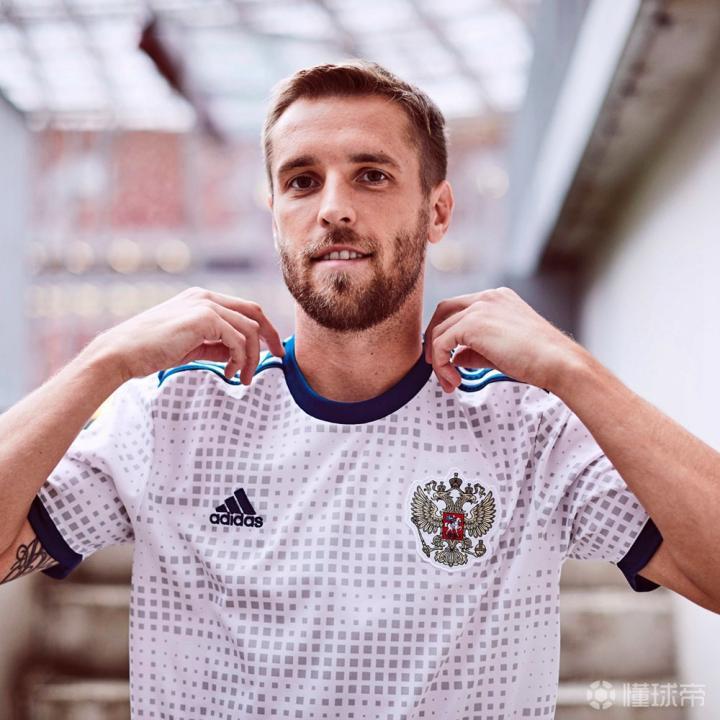 阿迪达斯为东道主俄罗斯准备全新客场战袍展现了俄罗斯日益流行的街头足球文化,通过在白色球衣上加入灰色渐变方块图案,向俄罗斯所的地标性建筑以及工业重镇致敬。