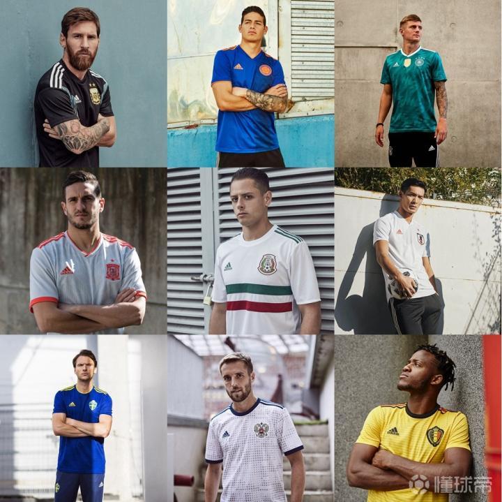 ENJOYZ足球阿迪达斯刚刚推出全新2018世界杯国家队客场球衣,包括阿根廷、哥伦比亚、德国、西班牙、墨西哥、日本、瑞典、俄罗斯及比利时在内的9支世界杯参赛球队将身披全新客场战袍亮相今夏世界杯。