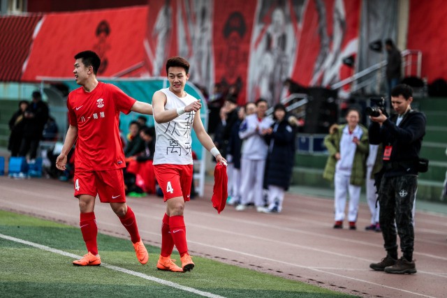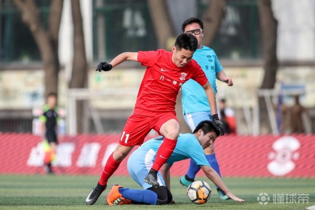 双方球员握手、挑边结束过后,小球员与自己偶像们一起进行赛前合影。之后,随着裁判的一声哨响,双方的比赛也就此拉开了序幕。比赛伊始,虽然八一占据主场优势,但十一学校却率先发起了攻势,险些通过直塞身后的单刀球打破僵局。
