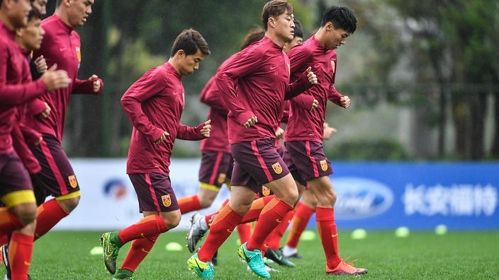 中国男足在训练中