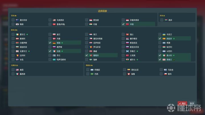首先,在选择联赛的这个页面,你要根据你执教的国家队选择联赛。比如。本次开档我们选择执教中国男足,首选的联赛是中国联赛,次选是葡萄牙联赛。你也可以根据游戏需要增添其他联赛。本次模拟,我选择的是中国、葡萄牙和欧洲五大联赛。为什么?原因很简单,方便你去在俱乐部的比赛中考察球员的表现。一会儿我会在文章里详细介绍如何考察球员。