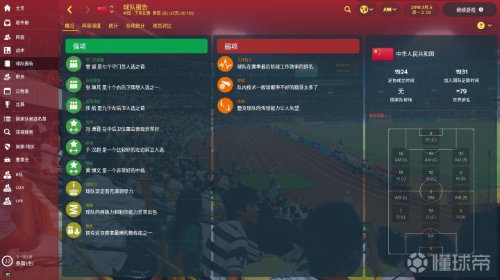 出于好奇,我在游戏里开档执教了中国男足,设定的初始时间是2018年3月5日。