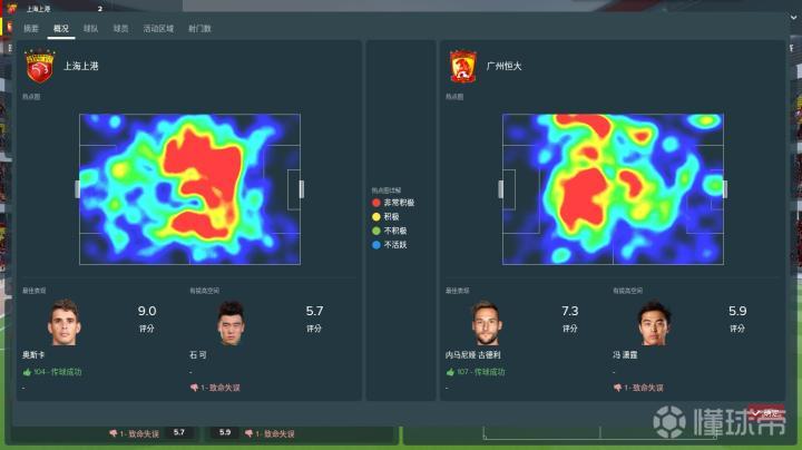 接下来我来讲讲如何在观战状态下得到有价值的情报。我们以广州恒大与上海上港的比赛为例。(游戏的模拟结果,仅供参考,如有雷同,实属巧合)