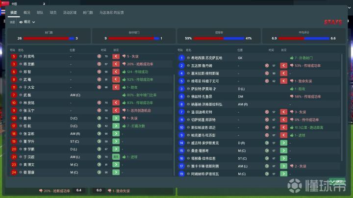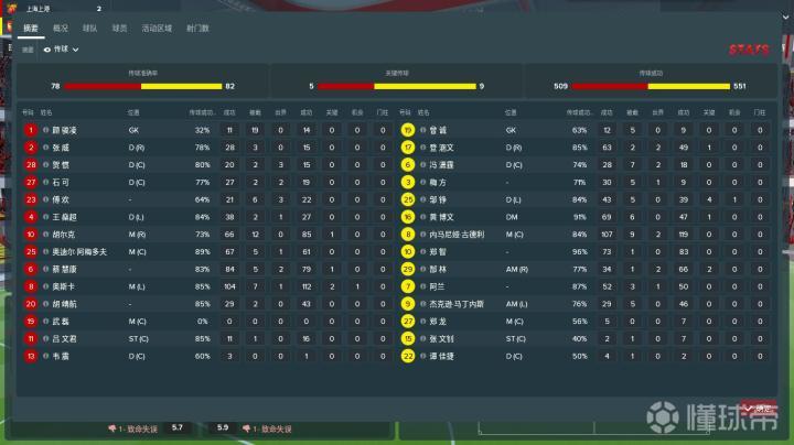 考虑到中国男足的球队报告中,球队的传球能力很差,所以在,每场比赛中,你还要特别留意一下全场比赛传球情况摘要。我觉得8传球成功率在80%以上的球员,尤其是中场,是你在选择球员时的优先考虑对象。